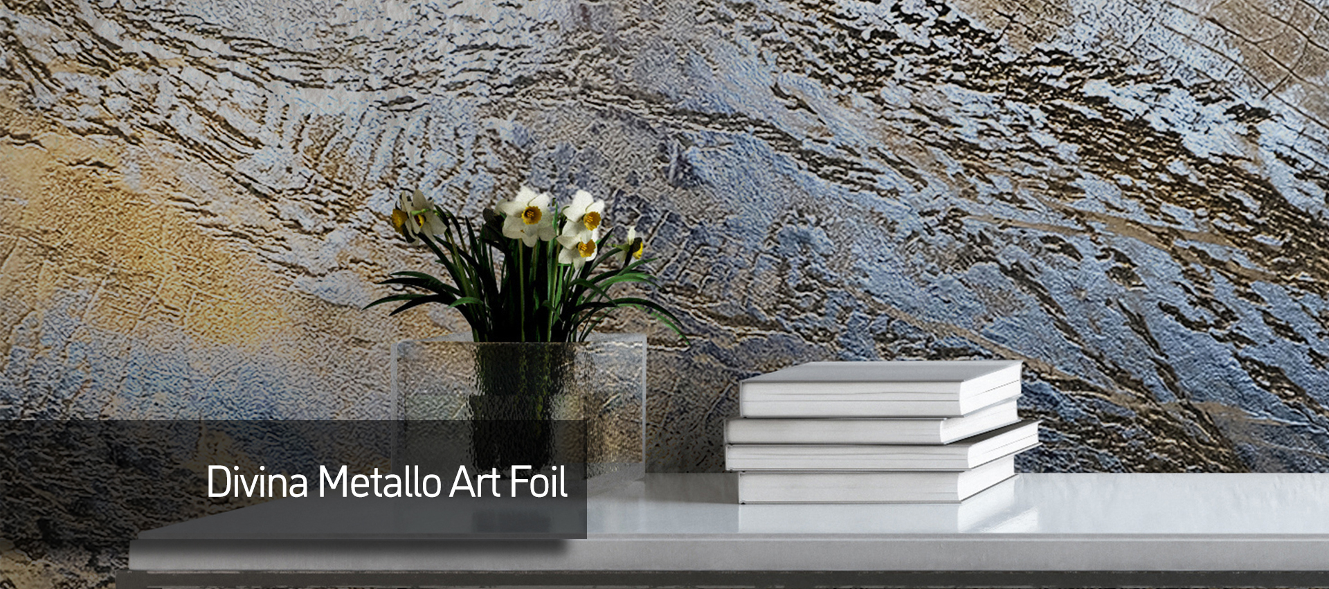 Divina Metallo Art Foil creează un impresionant efect de metal lichid, cu reflexii intense și un luciu sofisticat. Suprafața capătă profunzime și strălucire, devenind un adevărat punct de atracție în orice spațiu.