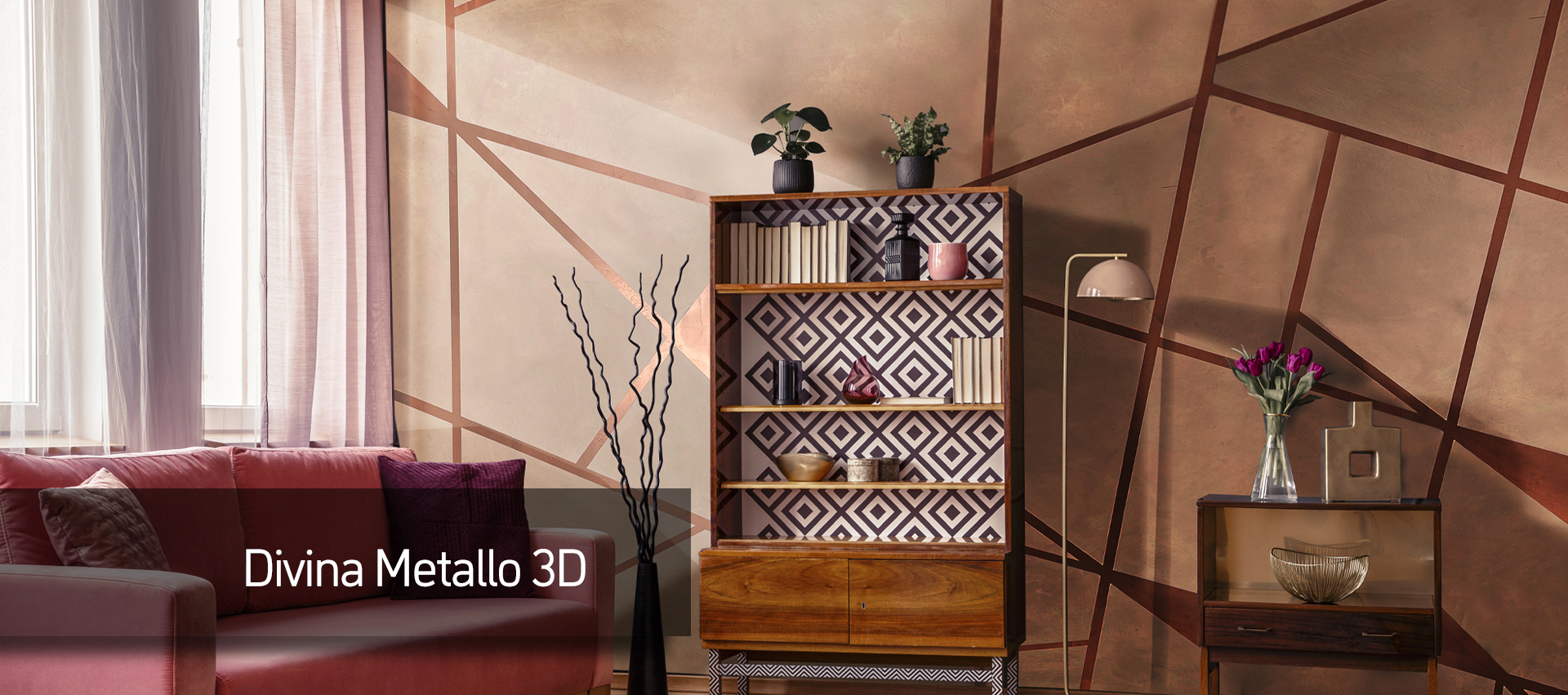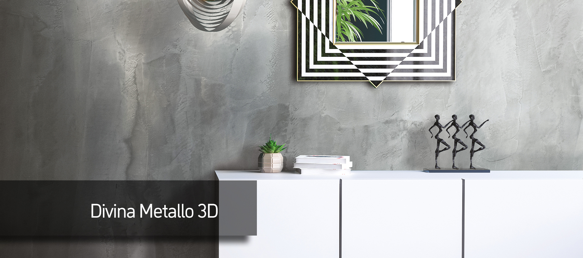 Divina Metallo 3D aduce în interiorul tău farmecul metalelor nobile, cu un efect spectaculos de profunzime și reflexii elegante. Suprafața capătă un aspect sofisticat, cu jocuri subtile de lumină care schimbă atmosfera în funcție de unghi și intensitate.