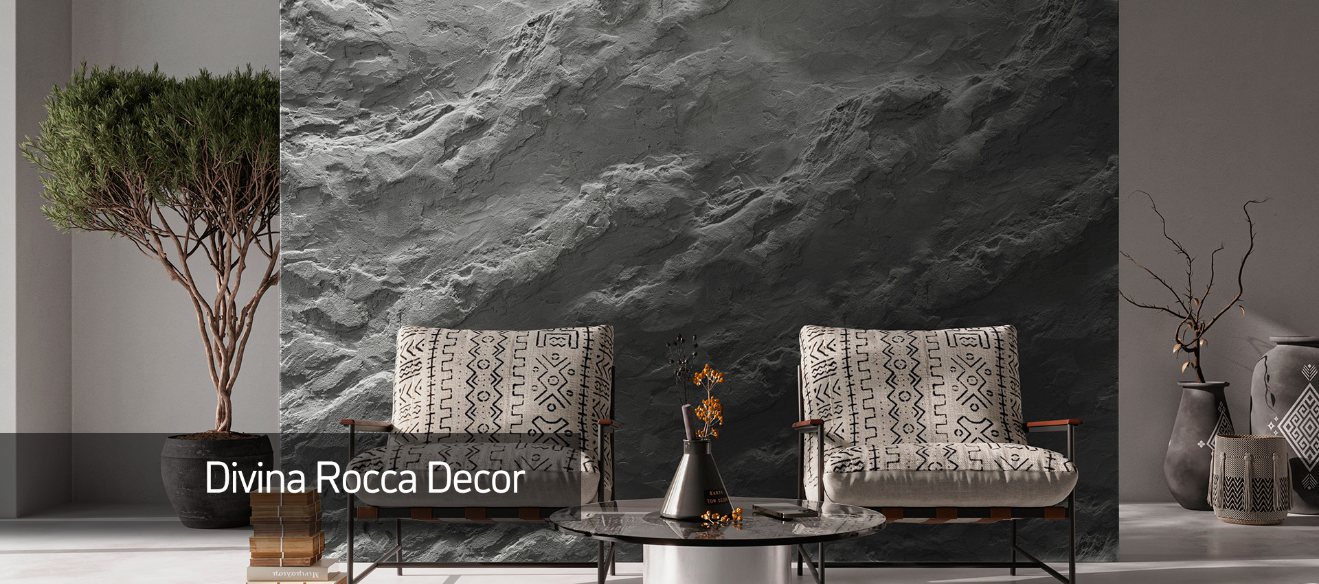 Divina Rocca Decor creează un efect autentic de piatră, cu texturi profunde și un aspect natural, impresionant. Se poate aplica în strat gros și permite modelări variate, astfel încât fiecare perete devine unic — fie că vorbim despre un living modern, un spațiu comercial sau chiar o fațadă cu impact vizual puternic.