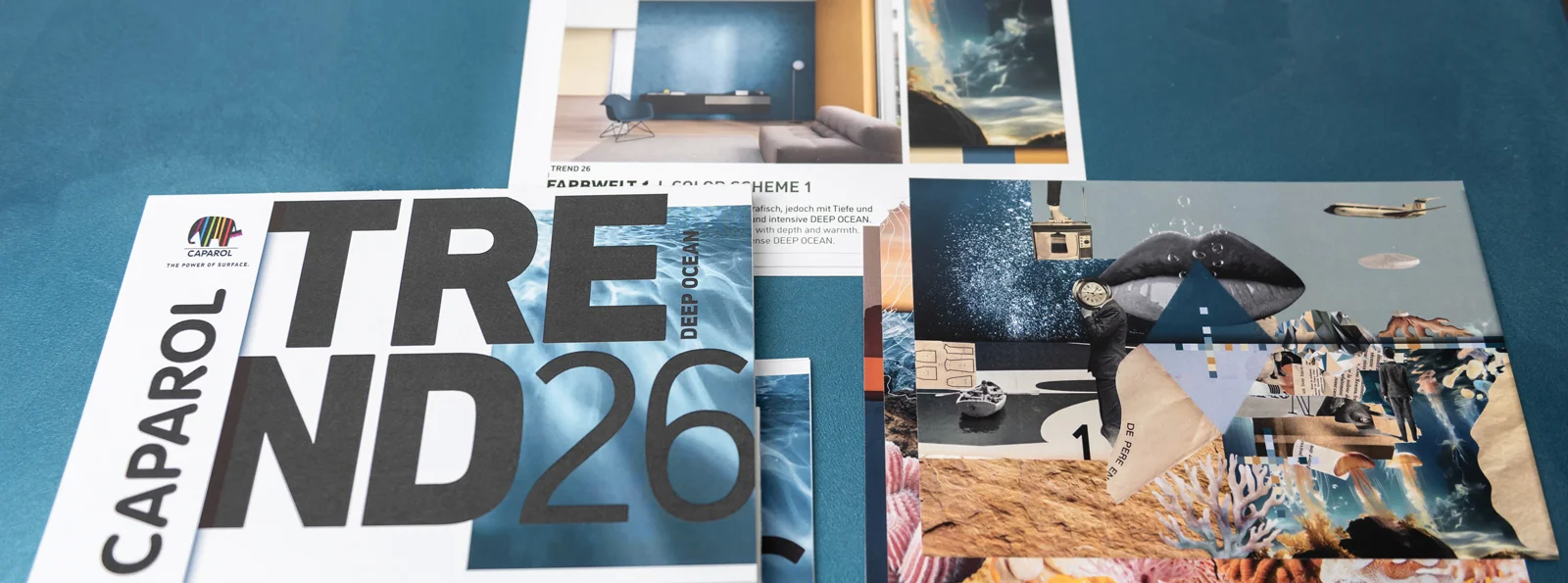 Oceanul este tema centrală a tendințelor cromatice din 2026. Cu DEEP OCEAN, un albastru fascinant, profund și în același timp rece, ocupă rolul principal în colecția de tendințe din 2026. Această nuanță transmite liniște, profunzime și serenitate. Această nuanță de tendință este însoțită de trei universuri cromatice care interacționează cu DEEP OCEAN, dar permit și armonii independente din toate cele trei universuri cromatice